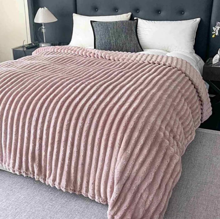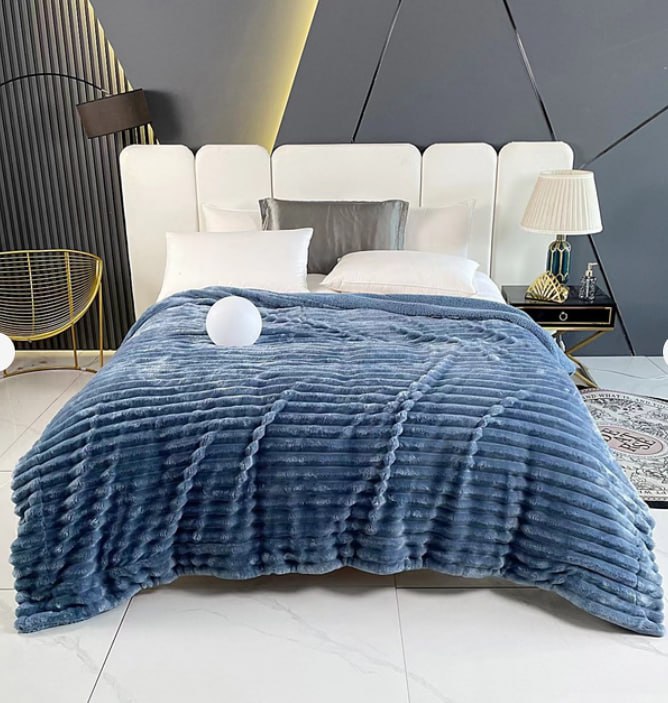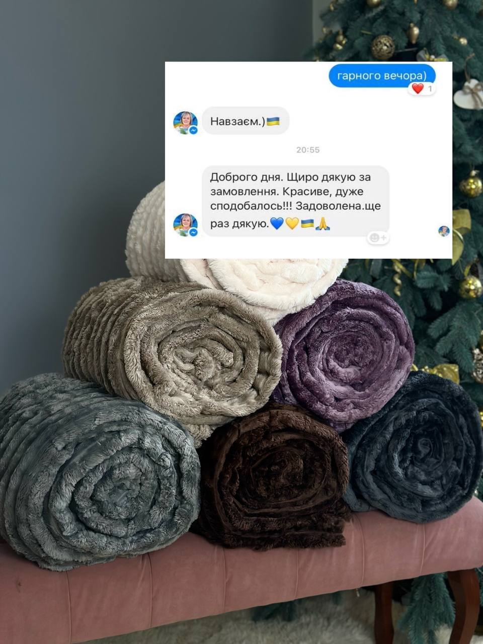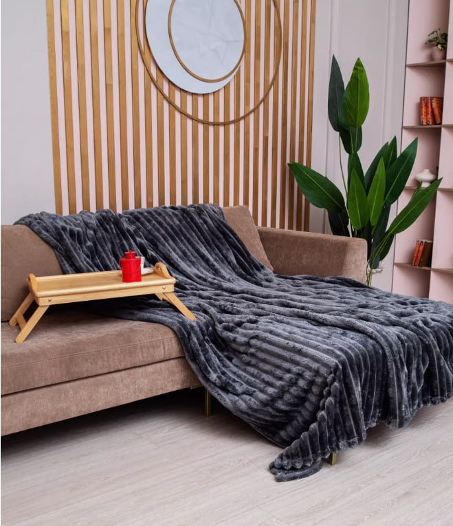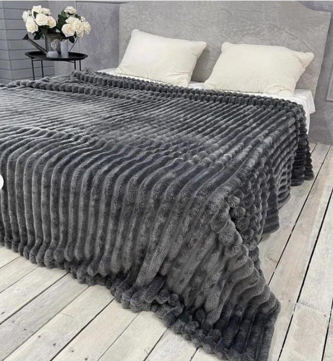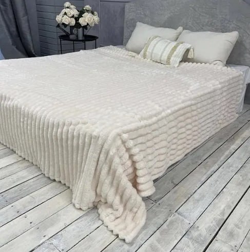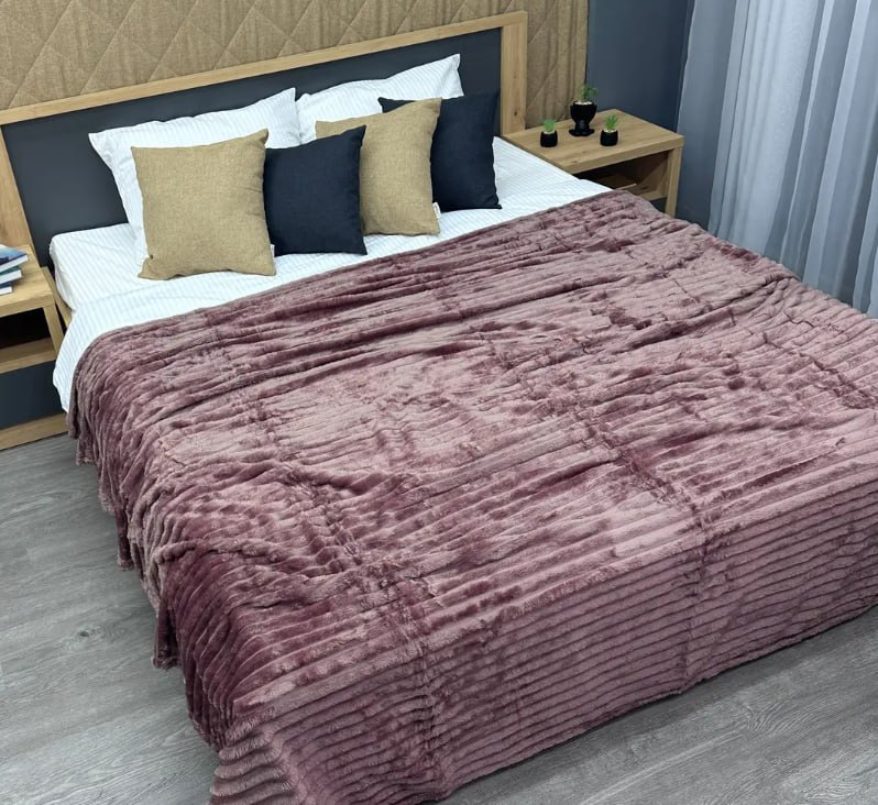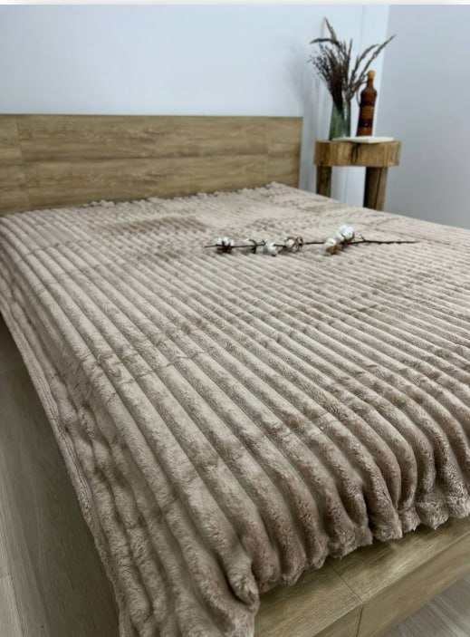 Сучасний дизайн зроблений з тисненням у вигляді смужок. Якісний матеріал велсофт ,володіє високою міцністю, чудово зберігає тепло. Має легку вагу і прекрасно піддається як ручному, так і машинному пранню